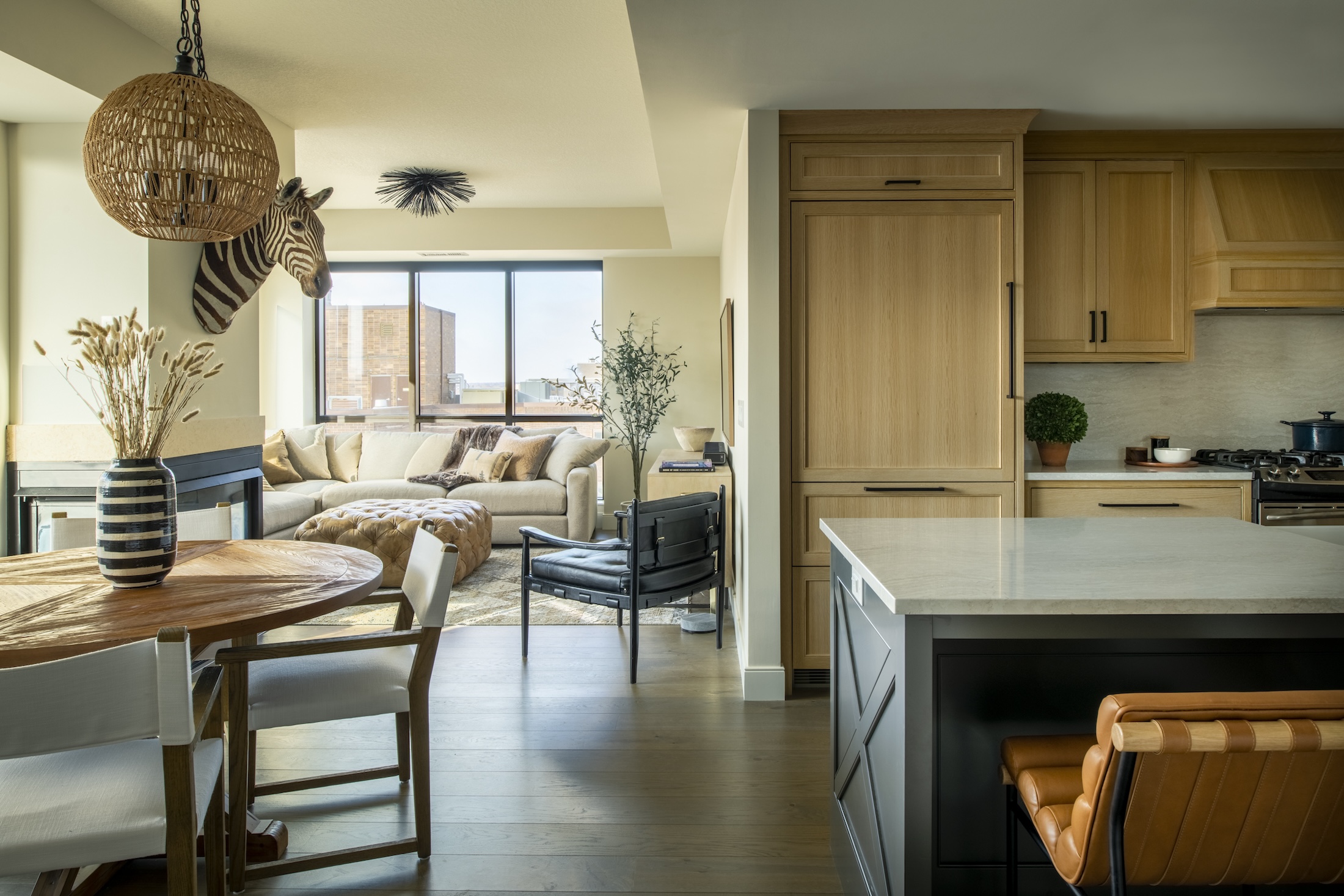 Perched in the Carlyle building in Minneapolis, this condo remodel blends thoughtful design with modern comfort. The kitchen and living areas were opened into a flowing layout, creating a space that feels both stylish and functional for daily life and entertaining.