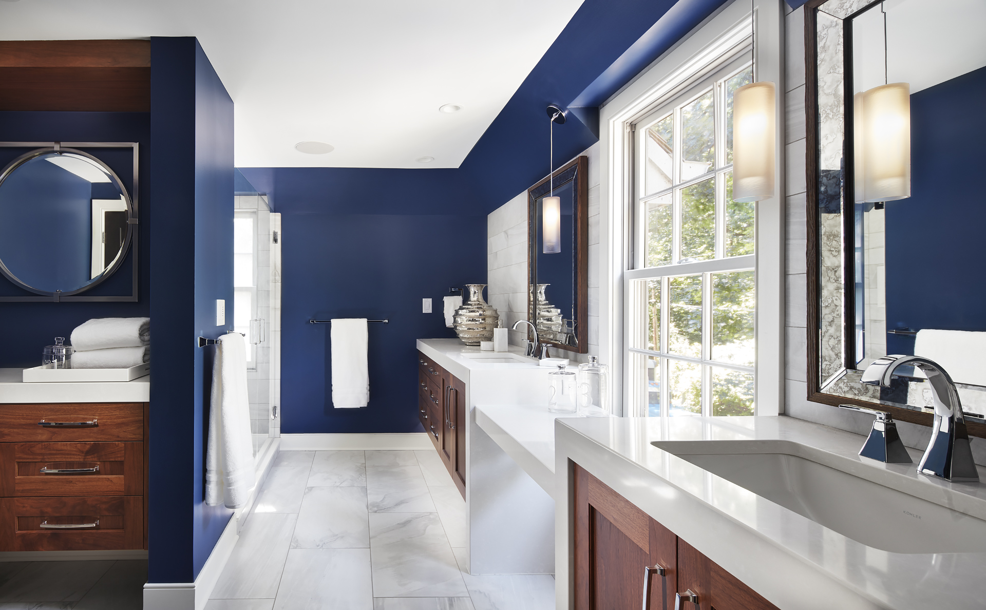 This French country-style home in Dellwood, Minnesota was fully transformed with a focus on craftsmanship and detail. Clean lines and a bold, masculine color palette bring modern character to the interiors, while care was taken to preserve the timeless European charm at the heart of the home.