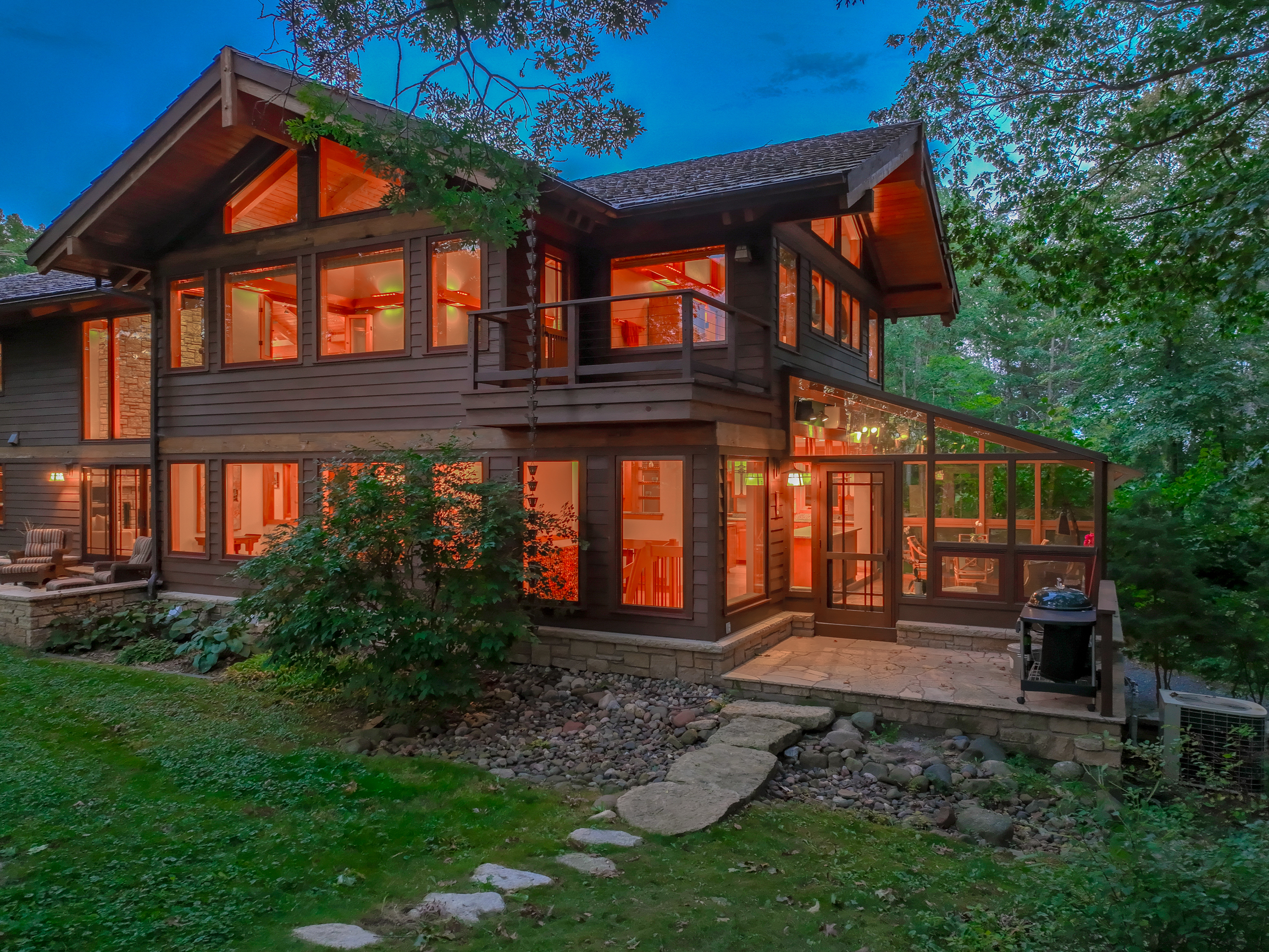Heartwood Bluffs is an extraordinary estate set on 26 secluded acres with 442 feet of sandy shoreline along Big Marine Lake. The home was designed to harmonize seamlessly with its natural surroundings, creating a retreat that feels both grand and grounded.