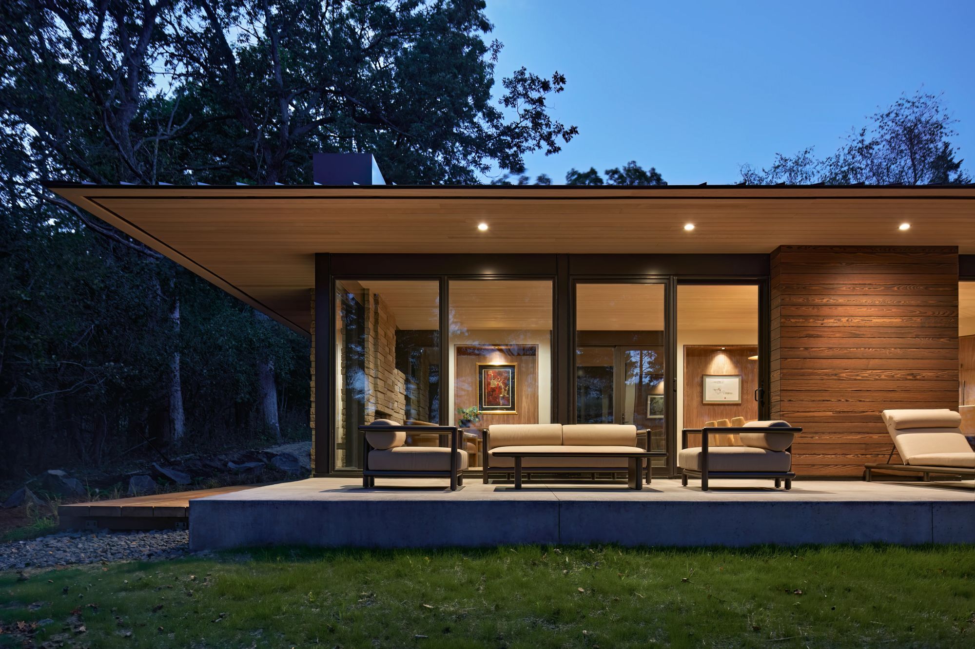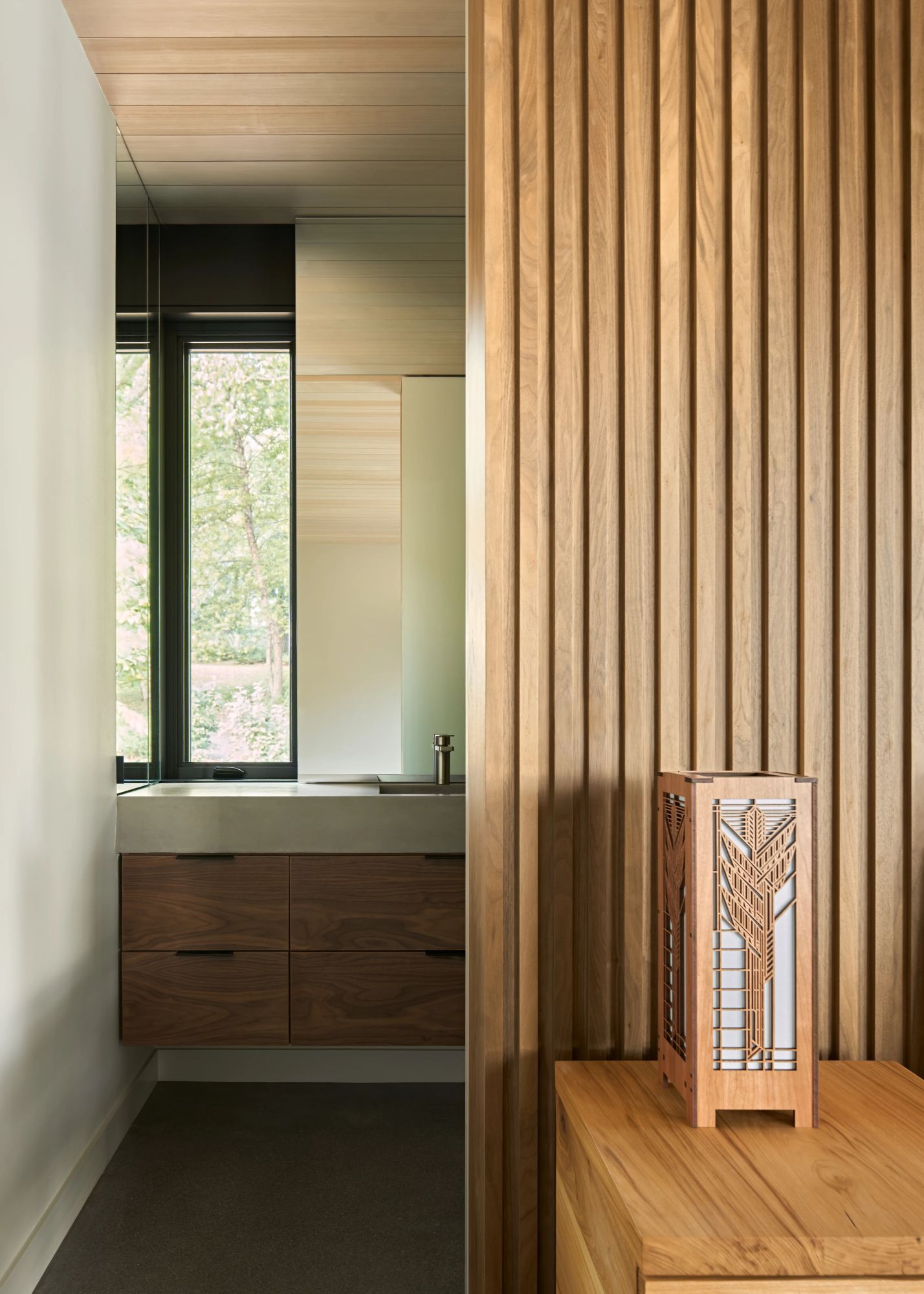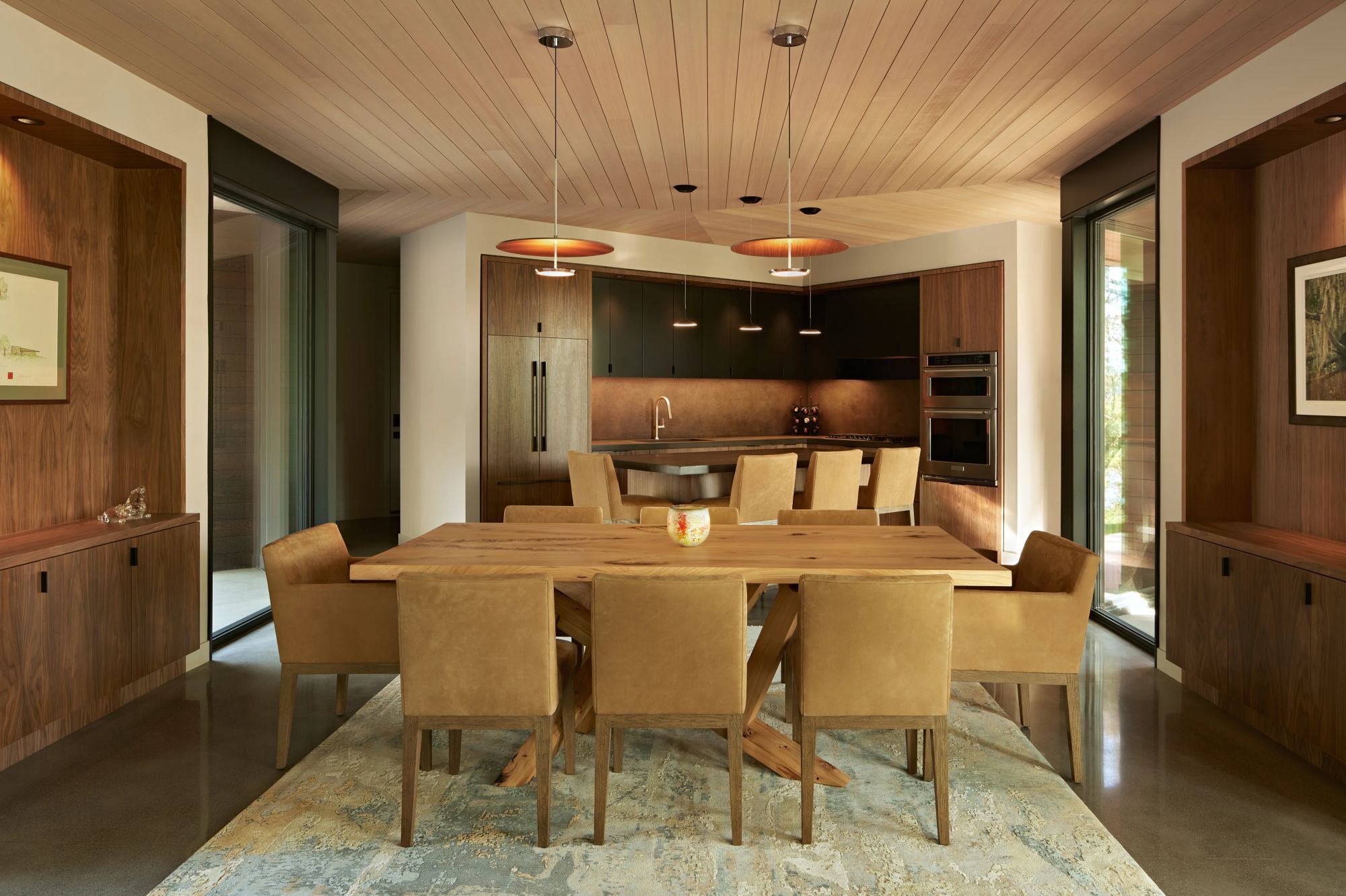 kYodai is a home of precision, artistry, and thoughtful design. Inspired by the neighboring Frank Lloyd Wright designed residence, we collaborated closely with the clients and architect to create a single-level, Y-shaped home that wraps gracefully around intimate garden spaces while connecting seamlessly to the surrounding landscape.