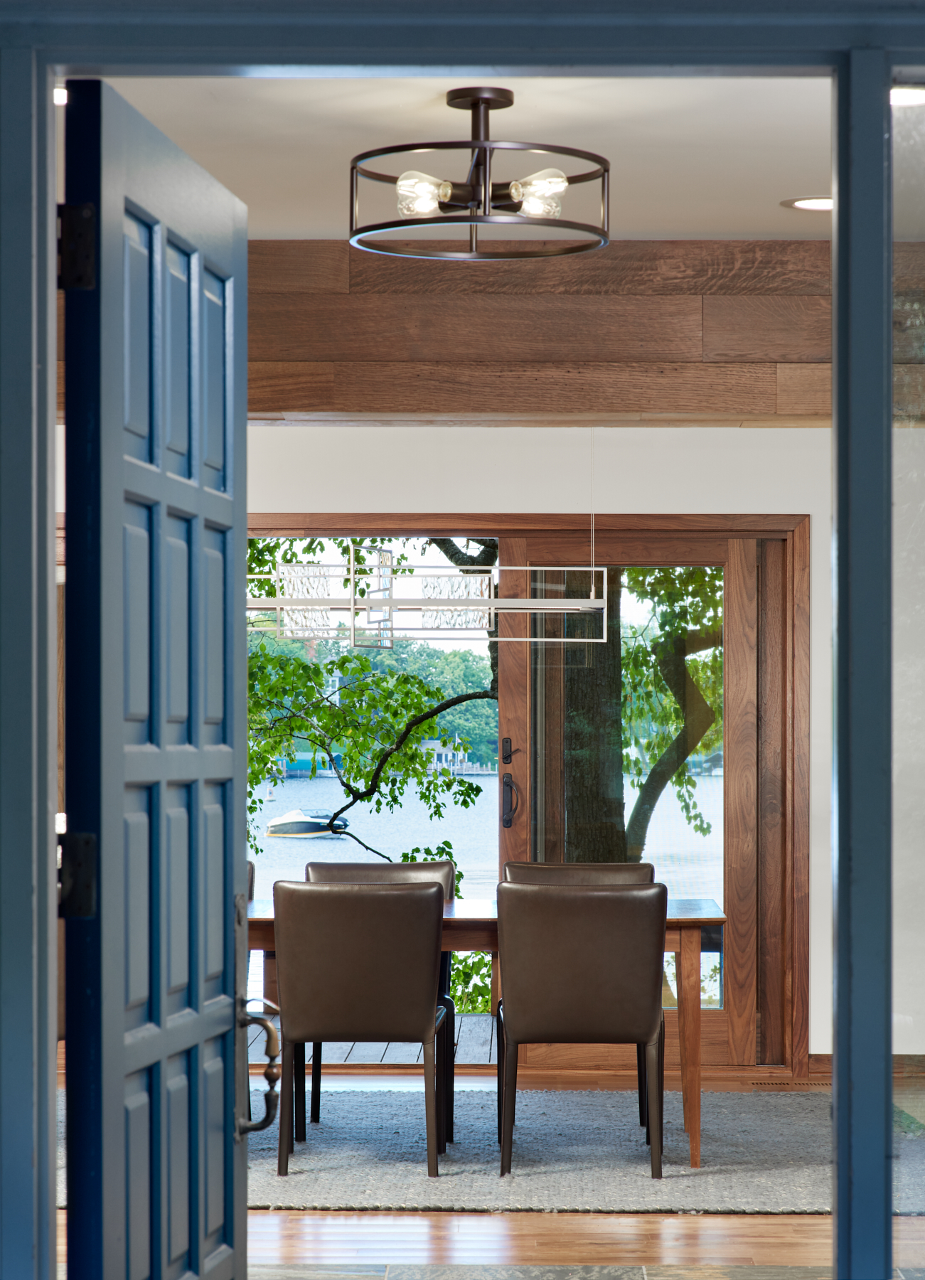 This Lake Minnetonka, Minnesota home was reimagined from a divided, traditionally decorated interior into a refined and masculine lakeside sanctuary for the homeowner and his young family. Our team at Hagstrom Builder carried out extensive renovations to open up the layout, removing structural barriers to maximize lake views and create a stronger connection to the water. Throughout the build, we incorporated nautical details that reflect the homeowner’s passion for boating and the lake lifestyle, including custom ceiling portholes and a concealed hatch leading to a hidden lower-level wine room. The result is a distinctive home that combines craftsmanship, personality, and functionality—anchored in its lakeside setting and tailored to the family’s way of life.