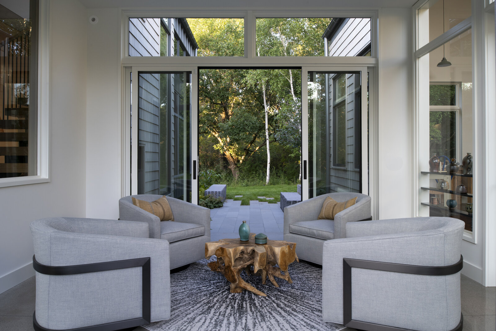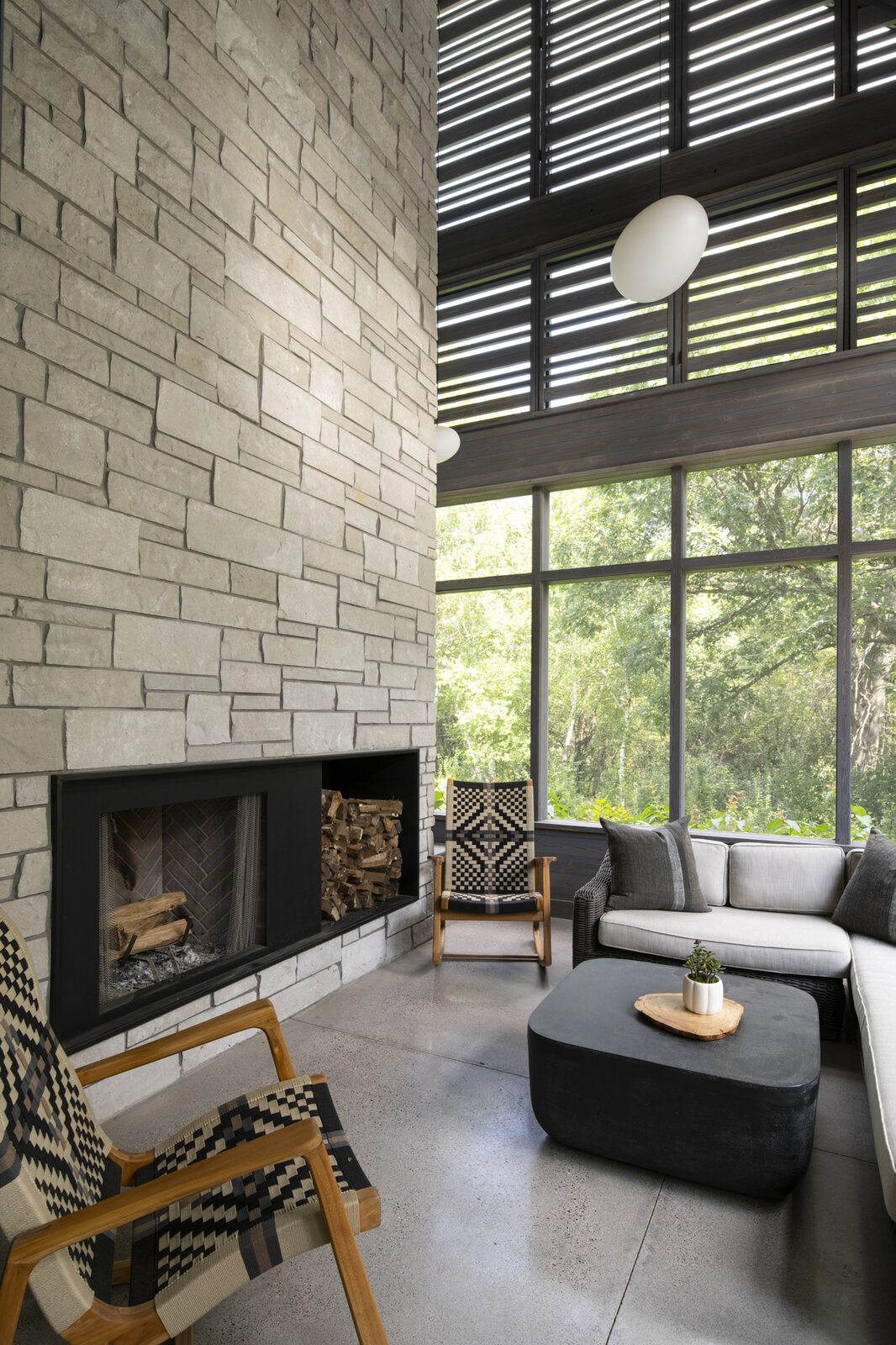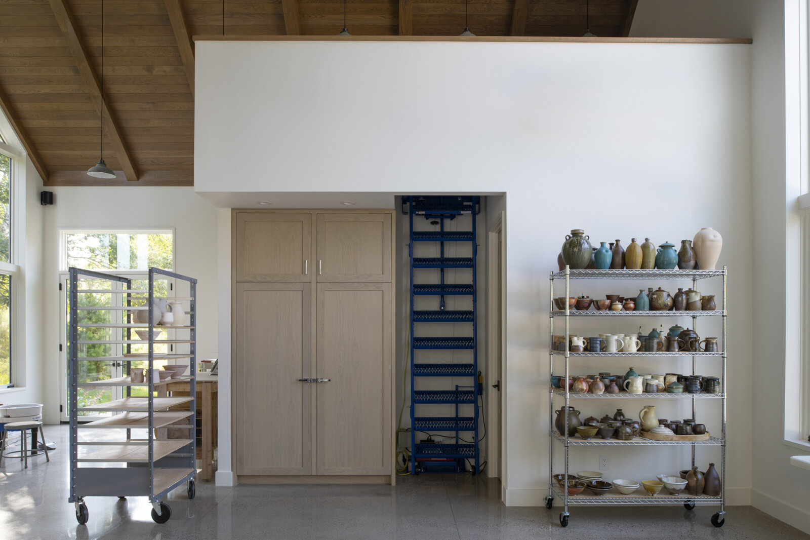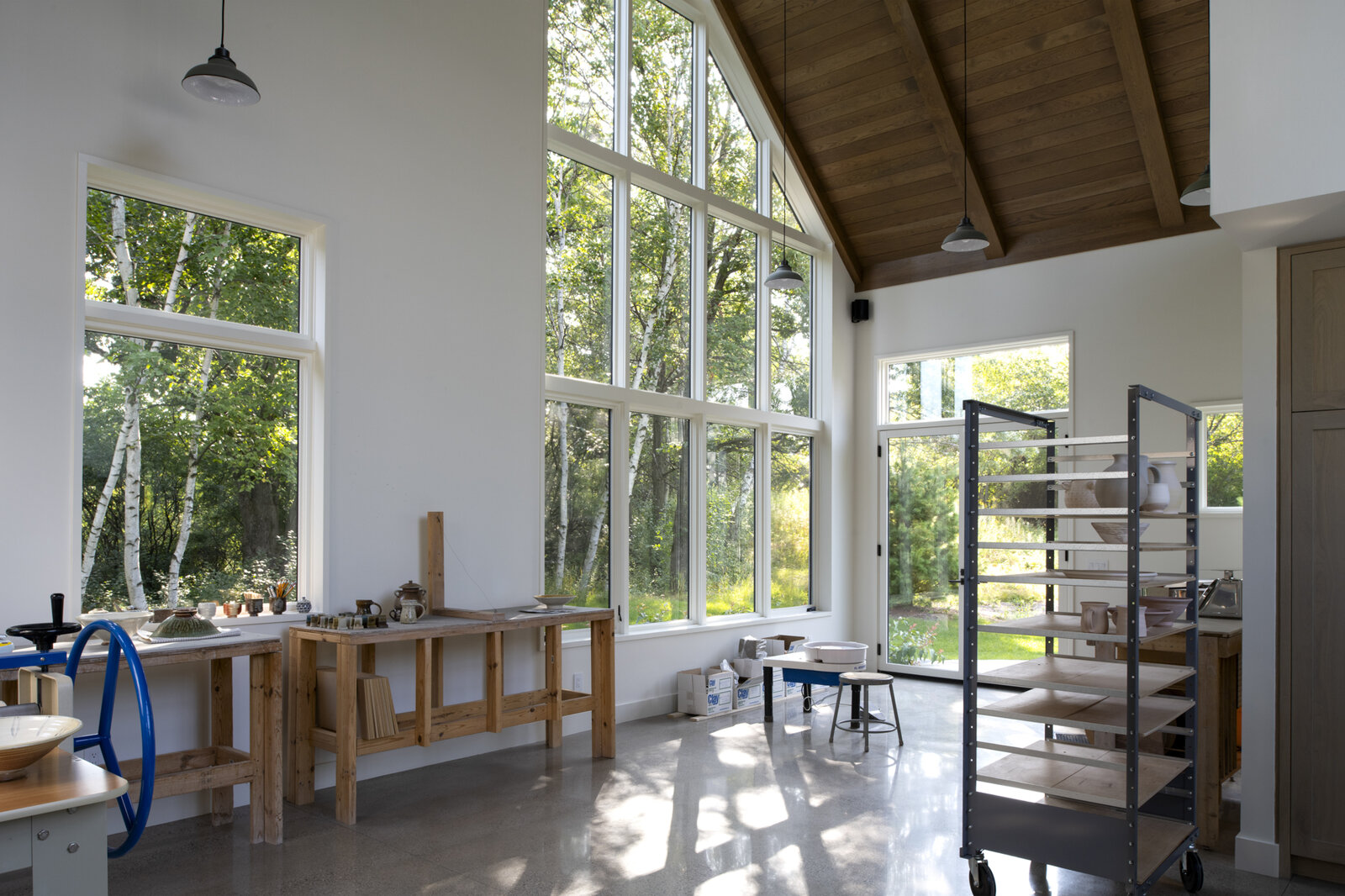 The Pottery Retreat in Grant, Minnesota was designed to be a sanctuary for creativity and everyday living. A dedicated pottery studio, complete with its own kiln building, supports hands-on artistic work while remaining fully integrated into the home’s thoughtful layout.