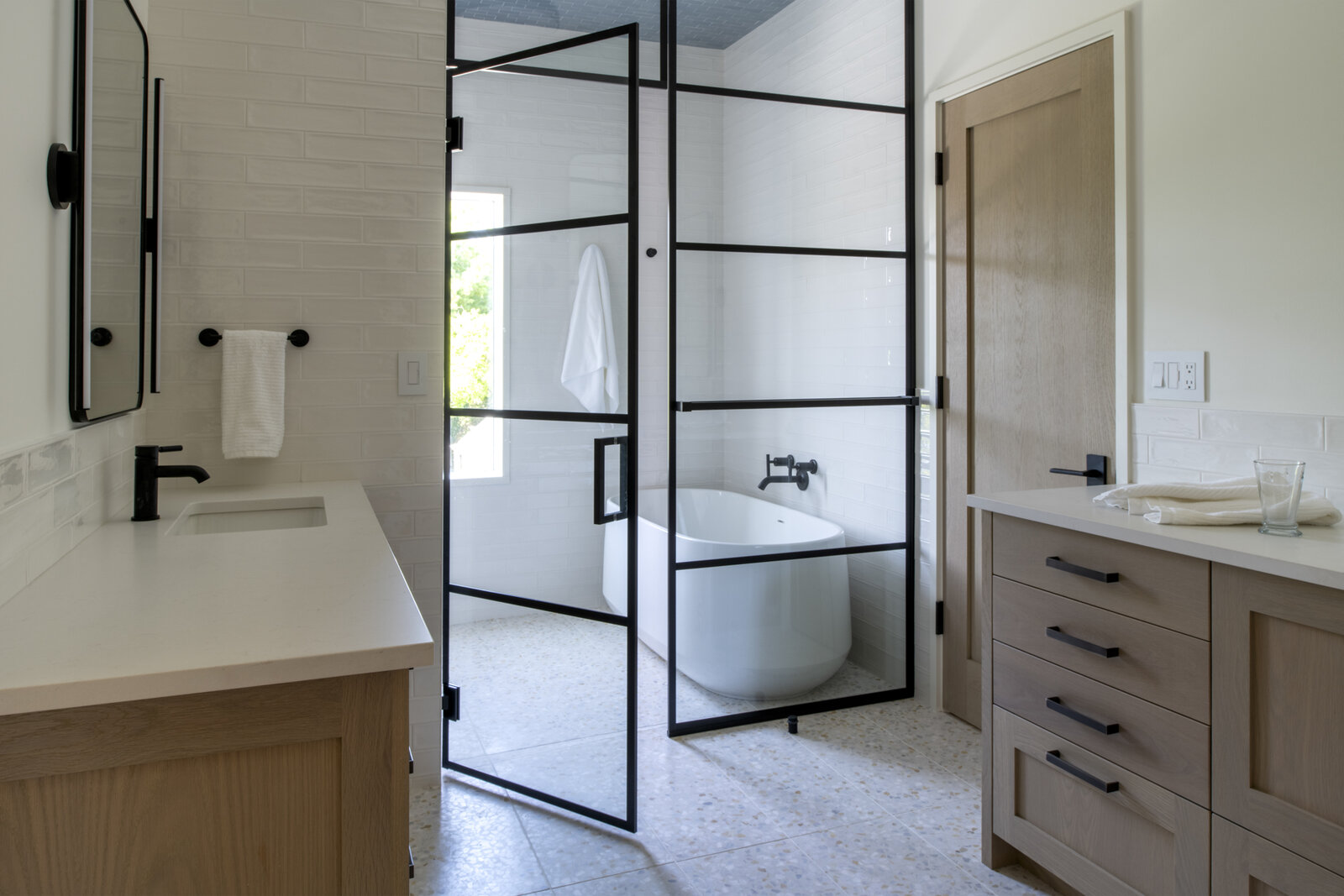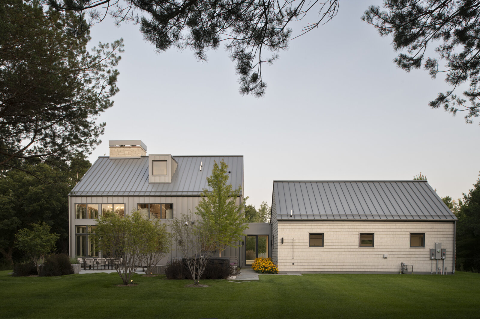 Inside, soaring white oak ceilings and abundant natural light create a warm, inviting atmosphere, while the standing seam exterior cladding gives the home a clean, sculptural presence that blends into the surrounding woodland. Every detail—from material choices to carefully executed finishes—was built with precision to balance function, beauty, and durability.